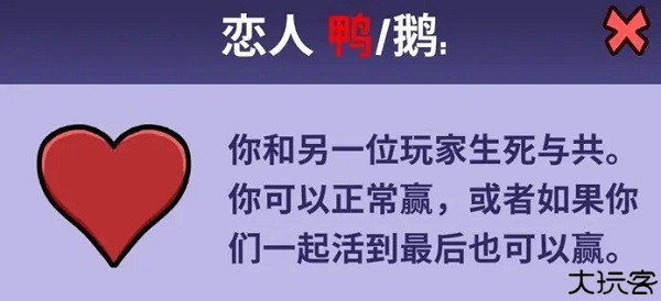 恋人 - 与另一名玩家有联系,如果他们都是最后一个幸存者,他们将一起获胜。