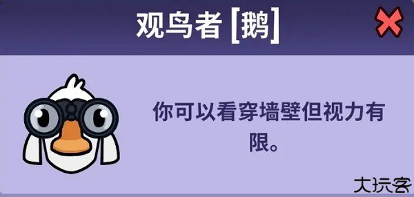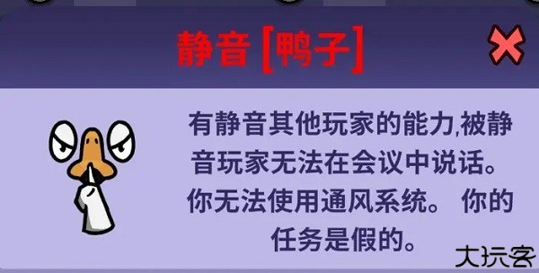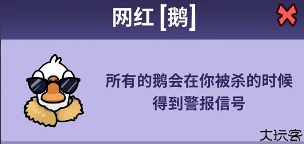 模仿鹅 - 其他鸭子会像鸭子一样看到你,但会杀了你(是好人,但混入坏人阵营迷惑对手)。