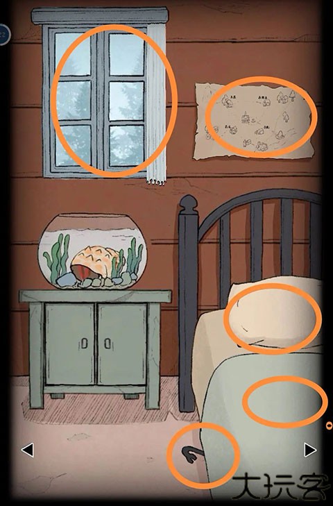 1、玩家先在木屋中收集各种物品,柜子左面的第三格是蜡烛。