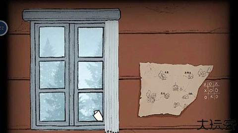 5、墙上有地图,从地图的右上角掀起可以游玩井字游戏。