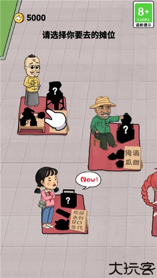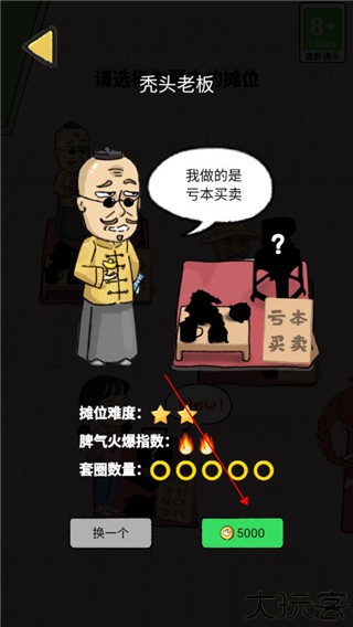 开场自由选定摊位项目,进入套圈投掷试炼流程。