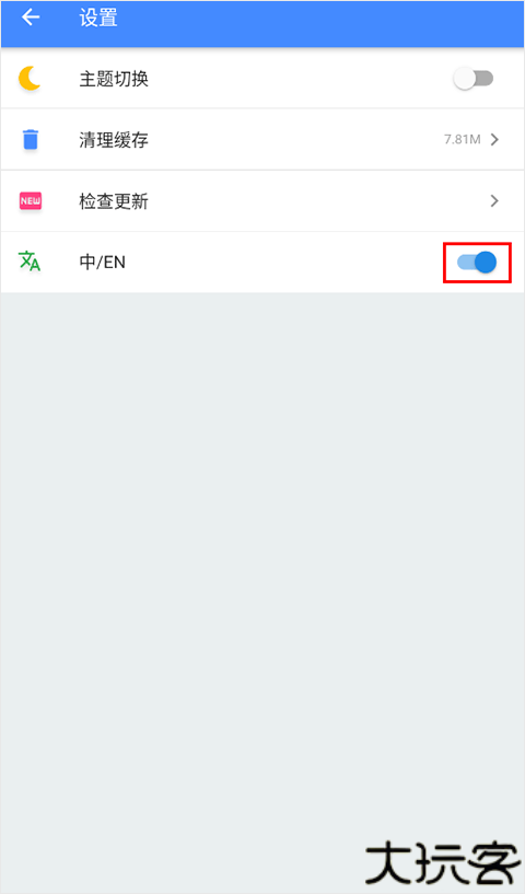 3、在这是页面里,找到中/EN,将它后面的按钮打开。