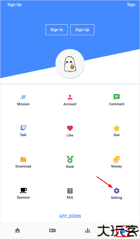 2、需要你点击个人中心功能进入,找到setting设置点击进入。