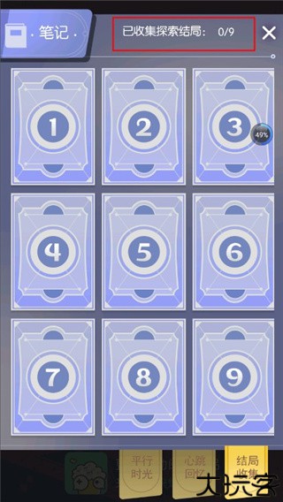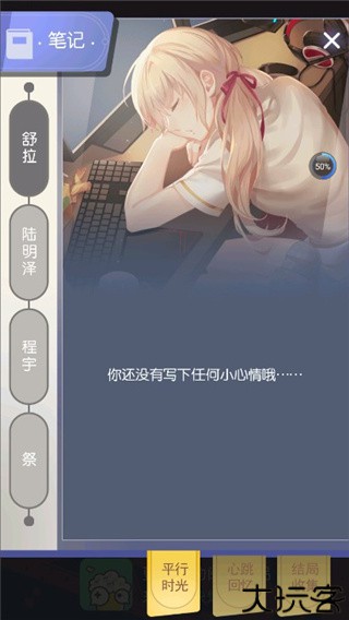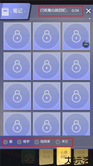 3、下方的黄色便签,是心跳回忆和结局收集。