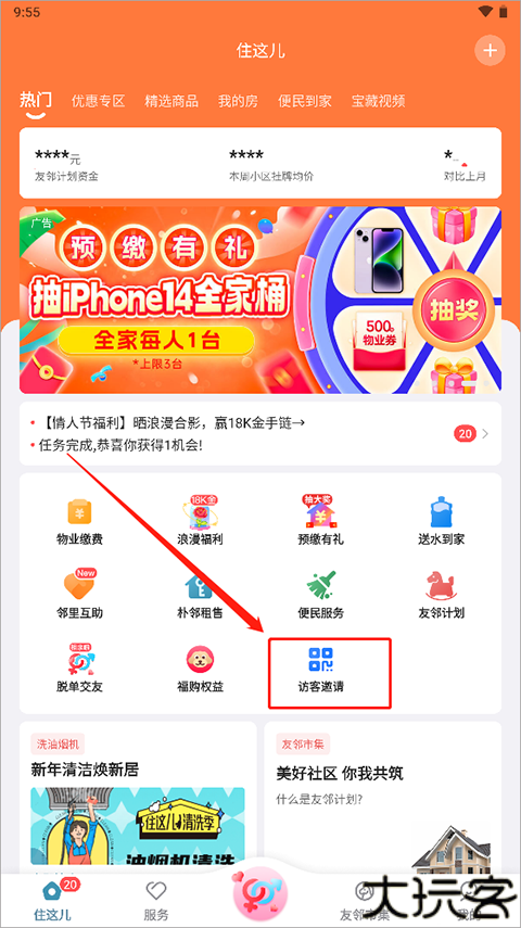 1、需要在首页中,找到访客邀请选项,点击进入。