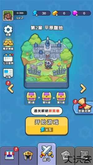 2、游戏里需要不断提升英雄等级解锁全部技能能够构筑坚不可摧的防线。
