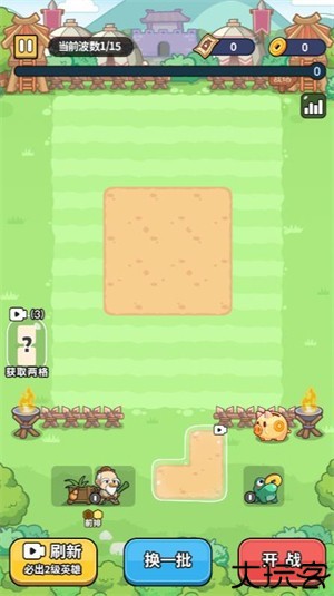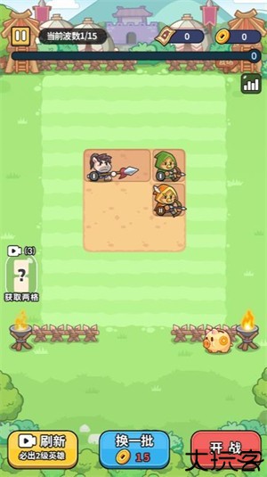 2、把初始英雄放入平地上,有相同的英雄可以合成来提升等级。
