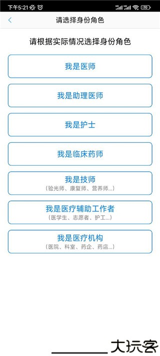 2、弹出页面后选择用户的身份。