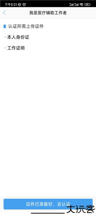 3、确认准备好的证件资料,点击去认证。