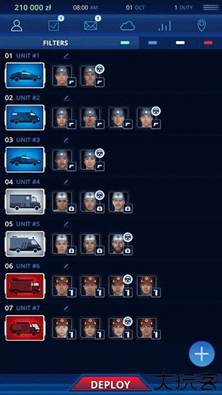 4、通过作战界面可管理队伍、装备、天气、事件等关键数据。