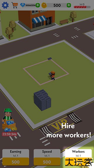 1、进入游戏之后,就已经开始着手建造大楼了,点击右下角按钮可以增加工人数量。