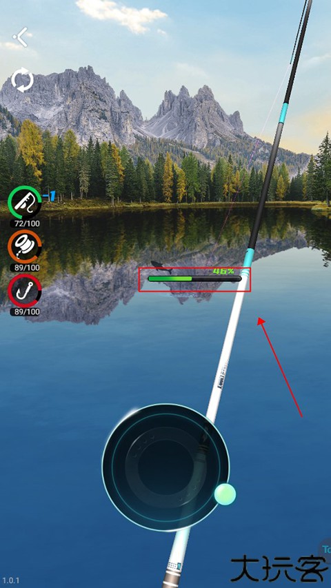 4、掉到鱼后,需要左右拉杆,将鱼体力耗尽后,就可以成功捕鱼。