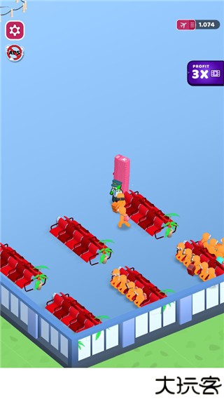 1、首先进入游戏,滑动屏幕以控制角色移动,随后在指定区域建立登机柜台。