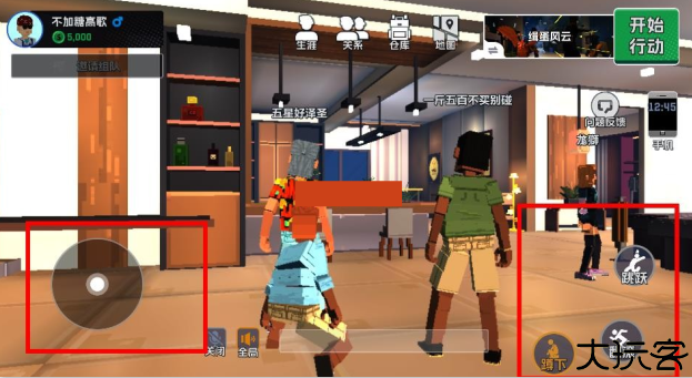 3、通过左右两侧控制键操控移动、互动和战斗等操作。