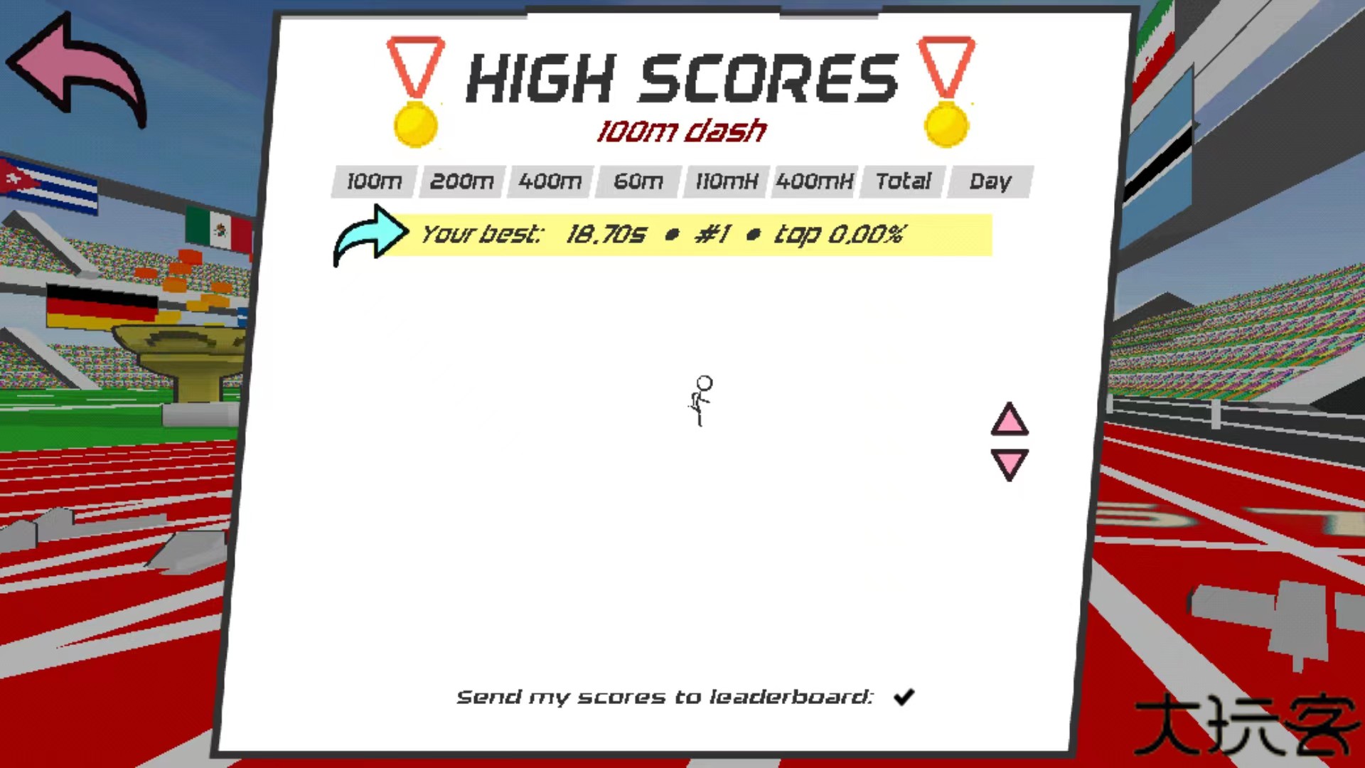 项目种类丰富,自由选择体验,示例以百米冲刺为主。