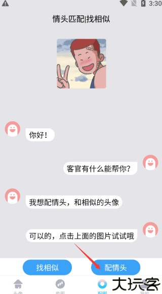 3、选择完毕图片后,点击配情头便可以找到相似。