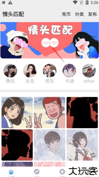 2、情侣头像配对功能里,提供着丰富的情侣头像资源。