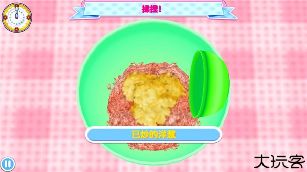 3、每一步都有时间限制,但是并不是越快就越好的。在做汉堡排的绞肉环节中,如果转动速度过快直接就把手柄摇飞咯。