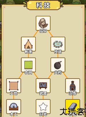 科技:遗迹修建好变成智慧神,点智慧神就能打开科技界面了