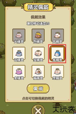 5、地图下面偏右侧有个精灵古树,解锁之后可以在里面抽精灵,应该就是宝宝吧。有个叫疾宝宝的精灵,佩戴之后可以增加移动速度。16钻石抽一次,右边礼物概率出50钻石。几百钻石,差不多就能把所有精灵抽到手。