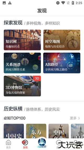 4、在“发现”板块浏览主题知识树,覆盖古今中外重要节点。