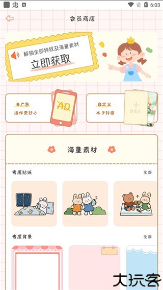 内置贴纸画笔与多种背景素材,更新速度也很快。