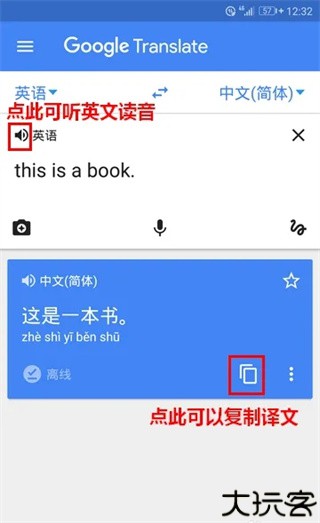 5、左上角的音量图标聆物岔听英文的读音,点击右侧下方的图标以鬼排低便复制译文。