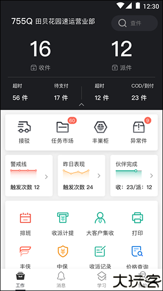 3、登录后进入首页,开始处理派送、取件等相关任务。