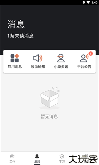 4、所有平台通知、业务消息等均可在此界面中查看。