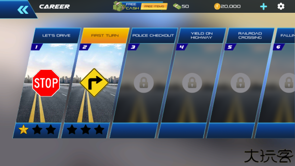 2、在这里可以选择驾驶关卡,每一个关卡都能让你学习到有关驾驶和道路安全所需的知识。