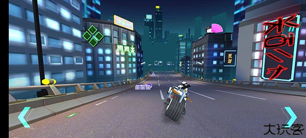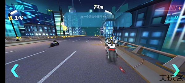 1、游戏模式主要是以驾驶摩托车进行比赛,超越对手,尽可能行驶的距离更远。