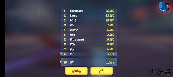 3、比赛中,玩家需要操控自己的乐高忍者骑手。