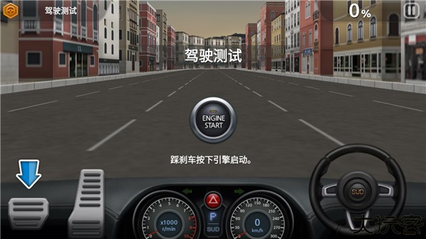 4、进入后,可以去踩刹车按下引擎开始启动车辆。