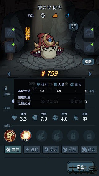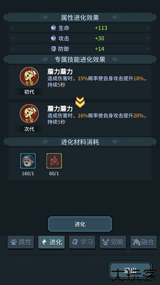 2、进化可改变属性,需消耗对应精华与巨心材料。