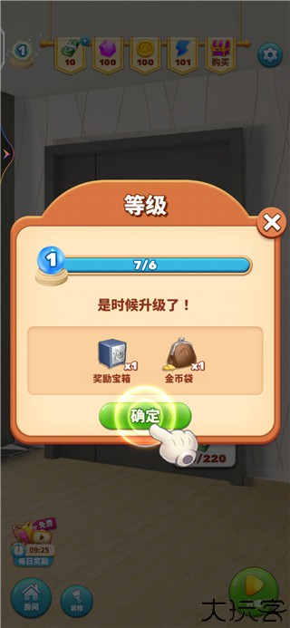3、当获得足够的经验时记得及时去升级,奖励的各种宝箱能让你的装修之旅更为轻松。