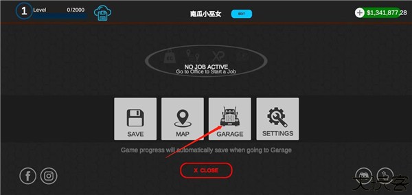 4、进入新界面,包括【SAVE】保存、【MAP】地图、【GARAGE】车库和【SETTINGS】设置选项,选择【GARAGE】车库选项。