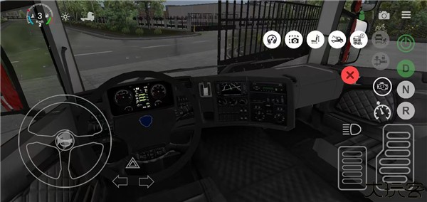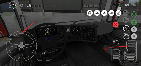 7、如图,进入主驾驶视角,点击【电源】和【D字母】按钮可以启动车辆。