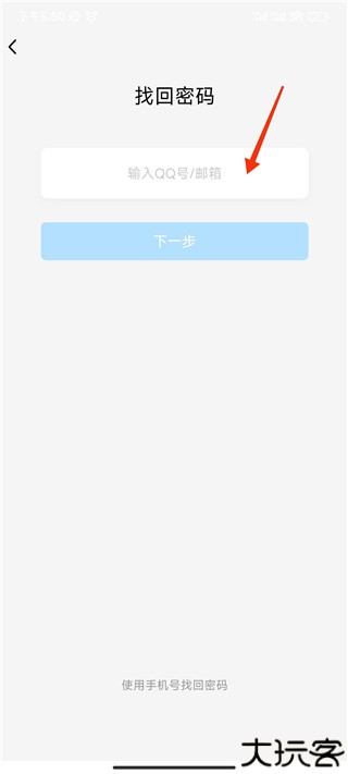 页面跳转至找回界面后,输入好友QQ号,点击下一步继续。