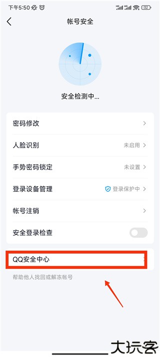 进入账号安全详情页后,点击页面中的“QQ安全中心”进入下一步。