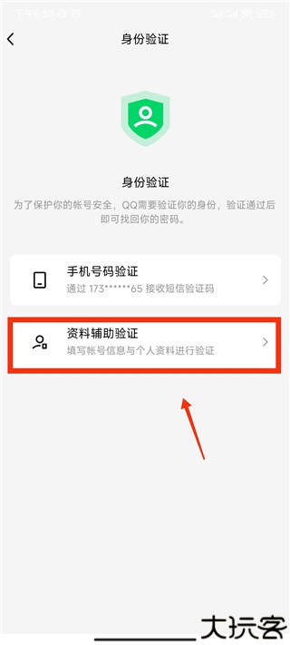 点击资料验证模块,好友获取验证码并完成辅助验证操作。