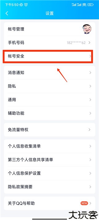 在设置页中下拉至“账号与安全”,点击进入进行相关操作。