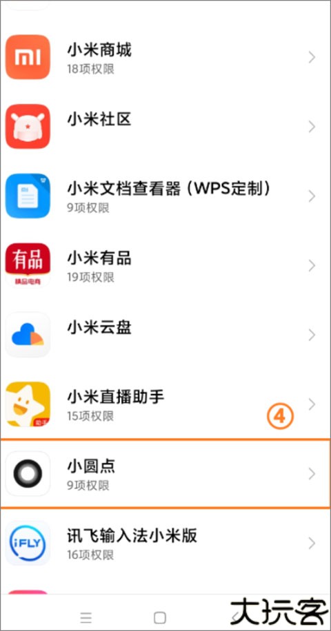 4、在应用授权管理的界面里,找到并点击小圆点。