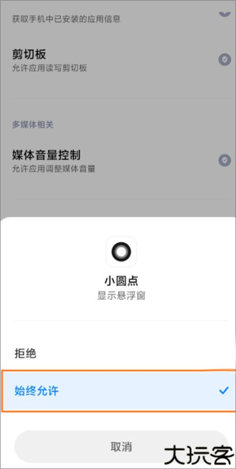 5、用户在软件权限界面后,点击显示悬浮窗,设置为始终允许即可。