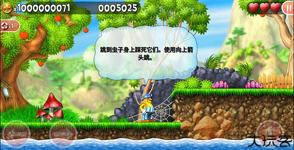 4、玩家在前进的路上,会遇到各种怪物,可以跳到它们身上以踩死它们。