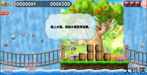 6、闯关期间玩家还获得各种奖励,跳上木桶并踩破可获得宝藏。