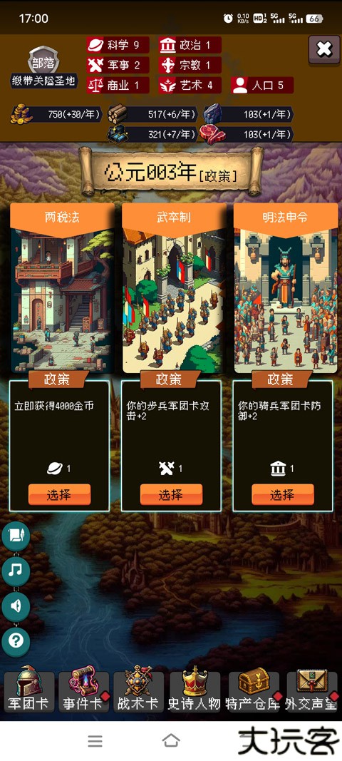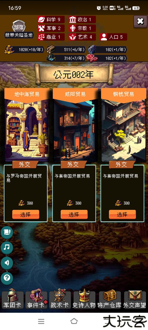 3、游戏的每一年需要在三个随机事件中做出选择,做好选择决策将直接影响国家的发展和命运。