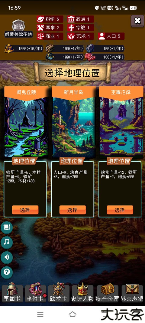 5、王国创建好后,正式进入发展,采用点击选择玩法。