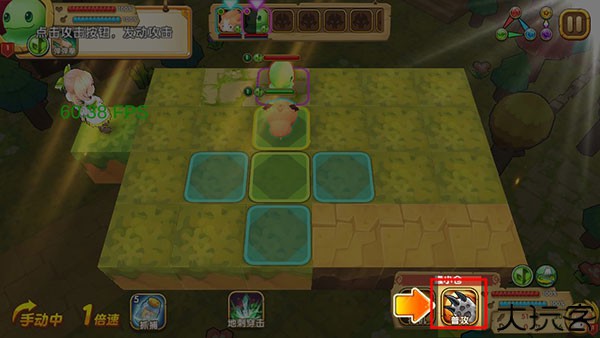 靠近敌人后点击攻击按钮即可释放技能造成伤害。