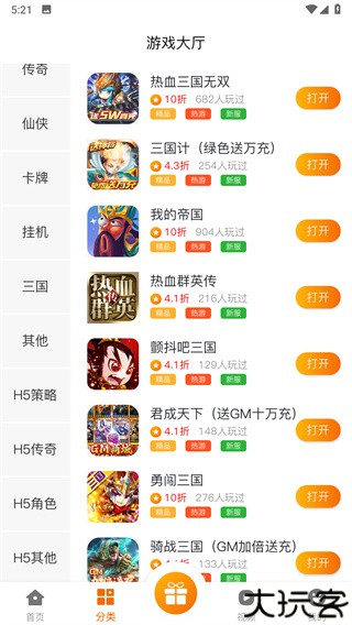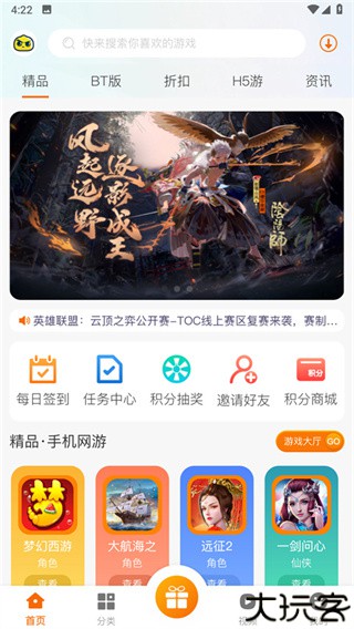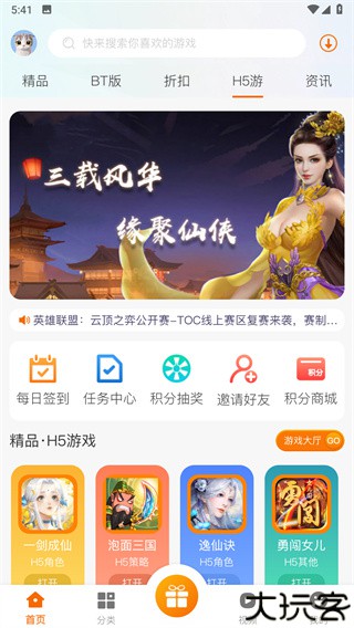 2、在顶部导航中选择H5游分类,直达轻量游戏区。