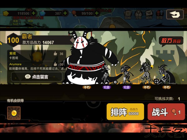 挑战这些强而有力的怪兽只需要消耗1点体力,获得的经验大概为普通关卡的2倍,但是这些对手又往很强力,对自己实力有自信的玩家可以前去挑战。